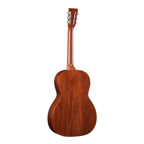 该款吉他再现了早起Style17吉他的外形,采用阴影色调西提卡云杉木面板,桃花心木背侧板,棕色龟壳包边。该款吉他为12品柱,古典风格开缝琴头,是独一无二的乐器佳品。